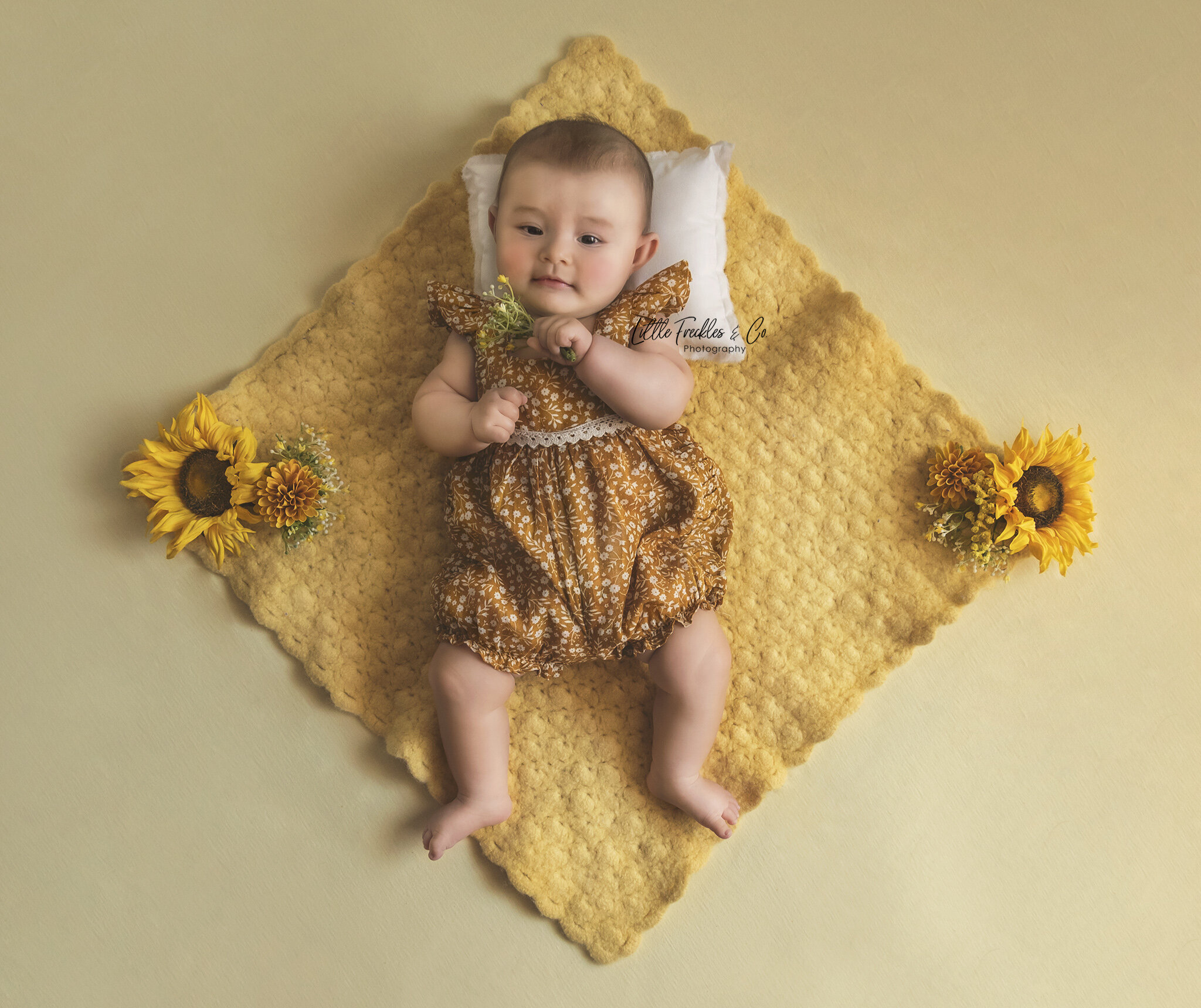 The sitter session (7-8 months) we celebrate how your baby has reached the milestone of sitting interdependently, playing with their feet and of course showing their personalities. In this session we include the use of props and outfit changes.